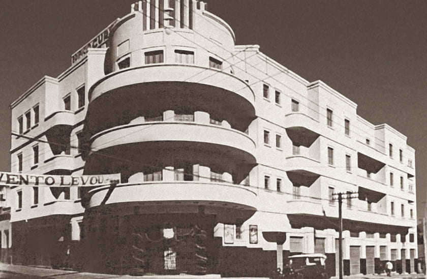 O edifício multiuso possui fachadas em estilo Art Déco, linguagem comum aos prédios de cinemas da década de 1940. É obra da firma construtora de Armando Maia Lello, que atuava principalmente na cidade de São Paulo, responsável por outros cinemas e pelo Edifício Santa Elisa, no Largo do Arouche (p. 204). Sua inauguração foi bastante noticiada na época, com destaque para os modernos equipamentos cinematográficos e os luxuosos acabamentos decorativos. Os proprietários, Francisco e Antônio Curti, chegaram a ter uma grande rede de cinemas do interior paulista, com 25 cinemas próprios e 46 em parceria. Com sua fachada cilíndrica de balcões curvos, o edifício ainda se destaca em meio aos prédios altos levantados a partir da década de 1950.
