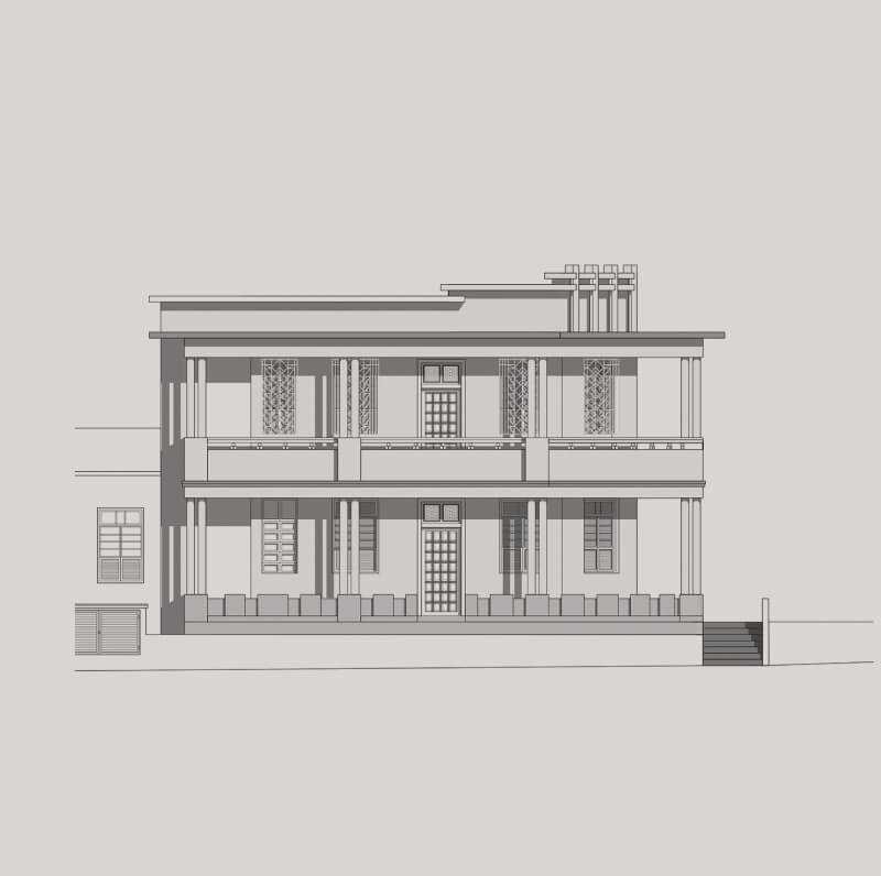 Assim como a casa do Umarizal, há mais de quarenta construções semelhantes no entorno da Praça Cônego Batista Campos. Nesse local histórico da cidade, a propósito, a Drogasil restaurou outra bela edificação. Um pouco mais antiga, de uma época anterior da expansão do centro de Belém, a casa tem pé-direito alto e porão baixo com aberturas ovaladas, que garantiam a ventilação nos antigos assoalhos. Um repertório de elementos, desenhos e formas se repete nos frisos e nos relevos, resgatando a estética da época.