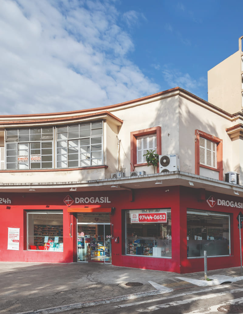 Uma das mais antigas farmácias da rede Drogasil fica no bairro de Mirandópolis, zona sul de São Paulo, em um pequeno prédio de esquina, com uma ampla calçada e um pequeno largo a sua frente. Esteve ali desde a inauguração do prédio em 1950, retornando depois de um período de ausência.