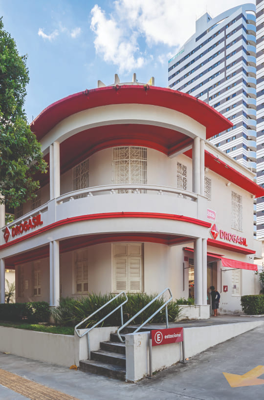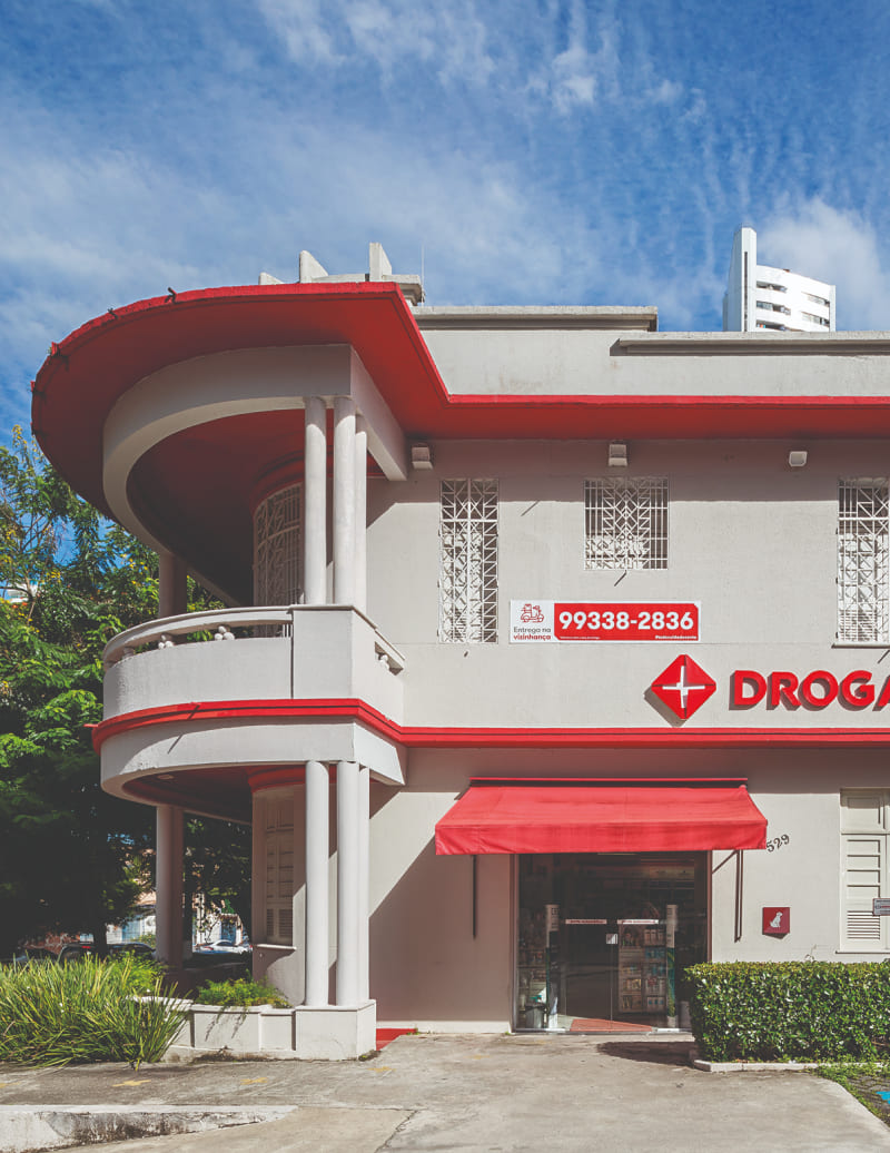 Assim como em Nazaré e Batista Campos, o bairro de Umarizal, nome que deriva de uma árvore da região, viu surgirem muitos casarões no período do ciclo da borracha, entre o final do século XIX e início do XX. A antiga residência em que a loja Drogasil se encontra no bairro está a três quadras do Porto de Belém. Amplo e arejado, o sobrado tem varandas e jardim à sua volta, e maior recuo justamente na esquina para a Avenida Senador Lemos, rua principal e que segue paralela ao rio.