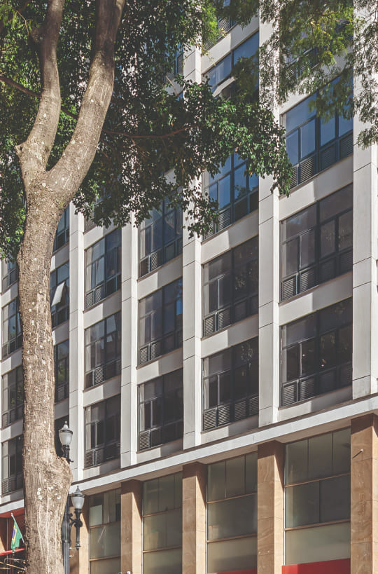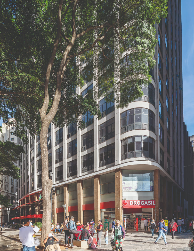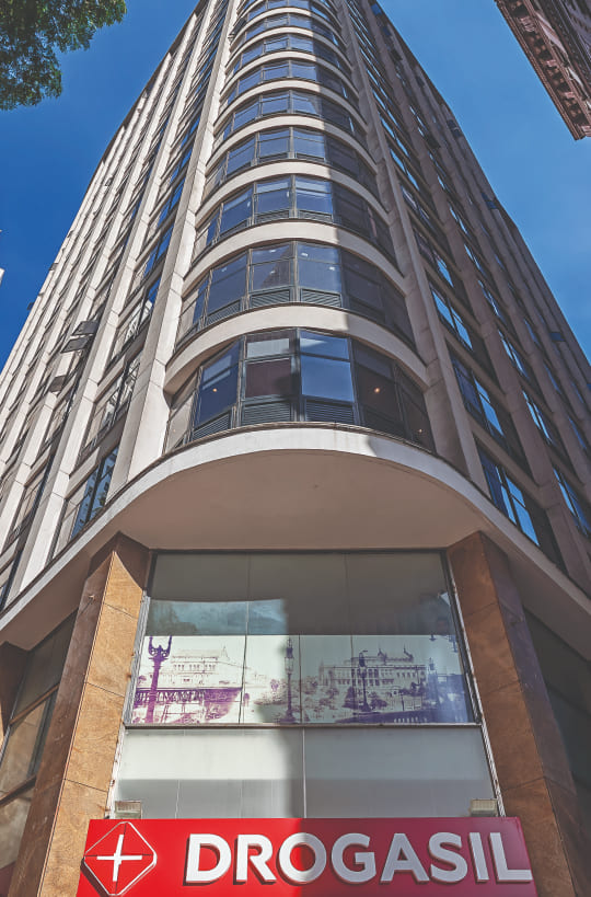 Construído na década de 1950, o Edifício Oswaldo Cruz tem relação com a Drogasil desde sua origem, sendo a obra realizada pela Construtora Morse e Bierrenbach, sociedade da qual participava a família Morse, também uma das fundadoras da rede de farmácias. O prédio segue um padrão Rua Barão de Itapetininga, 46 - República São Paulo, SP moderno relativamente simples e comum a outros edifícios feitos pela construtora, chamados edifícios Drogasil e implantados em várias cidades, muitas vezes como pioneiros na verticalização de seus centros urbanos. A rede ocupa com exclusividade o espaço no térreo, com cerca de dez metros de frente. Os andares superiores são ocupados por salas de escritórios.