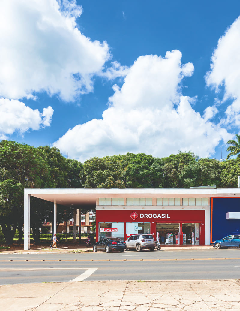 A loja Drogasil da Asa Sul do Plano Piloto situa-se no setor Comercial Local Sul, da quadra de número 102, em frente ao Setor Médico Hospitalar Sul, a três quadras do Eixo Monumental. Disposta em uma via conhecida como “Rua das Farmácias”, por concentrar há décadas esses comércios, está na divisa com uma quadra não residencial que concentra clínicas e hospitais.