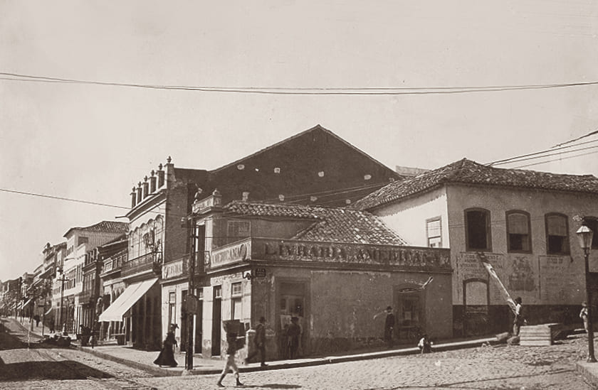 Em meados do século XVIII, quando começou a se desenvolver, a cidade de Porto Alegre era formada, em sua parte alta, pela Praça da Matriz – o Alto da Praia –, local do poder político e religioso, e em sua parte baixa, pela praça da Alfândega, antigo Largo da Quitanda, praça do comércio e ponto de entrada dos navegantes para a cidade. A malha urbana se consolidou a partir de três ruas principais, a Rua da Praia/Rua da Graça (chamada de Rua dos Andradas a partir de 1865), a Rua Riachuelo (antiga Rua da Ponte) e a Rua Duque de Caxias (antiga Rua Formosa), paralelas entre si no sentido norte-sul e comunicadas por ladeiras transversais. Instalado em área peninsular, o núcleo urbano passou, entretanto, por sucessivos aterros, e a Rua da Praia, via comercial e movimentada, que a princípio beirava o lago Guaíba e se ligava ao porto, se distanciou das águas.