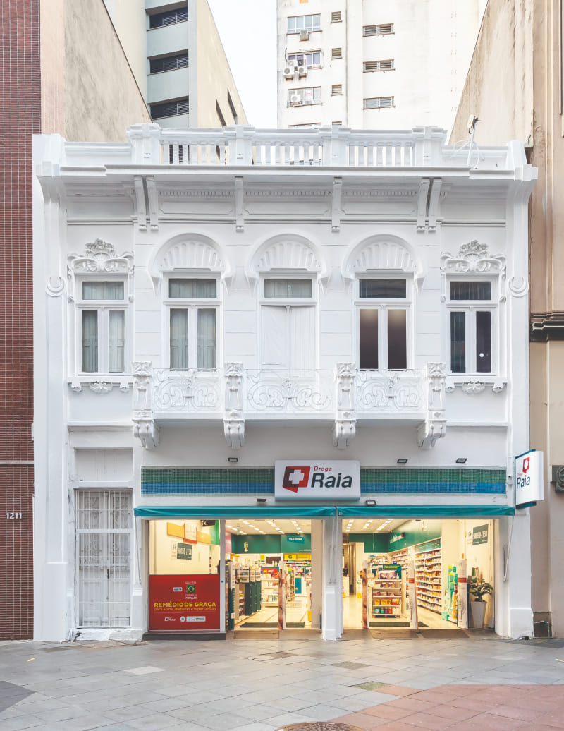 Remanescente da primeira ocupação da rua, o sobrado cujo térreo é ocupado pela Raia está em um trecho pedestrianizado desde a década de 1970 e ocupou diversos estabelecimentos e serviços ao longo do tempo. Ele guarda em sua fachada, sobre as janelas, relevos decorativos em forma de concha, remetendo à memória da rua.