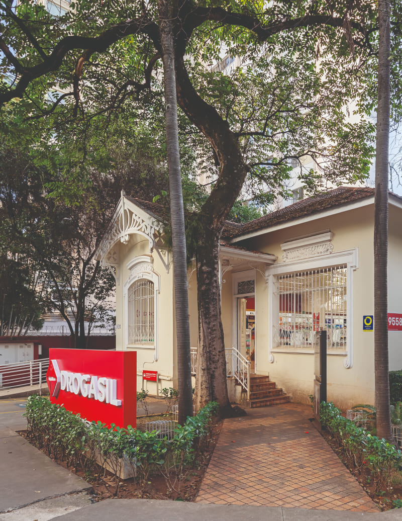 Em uma casa térrea estilo chalé, originalmente de uso residencial unifamiliar, está situada a farmácia Drogasil. Datado do início da urbanização do bairro de Perdizes, o imóvel é parte da história da medicina e da psiquiatria na cidade, com características históricas e arquitetônicas peculiares no conjunto de edificações tombadas como patrimônio cultural no bairro.