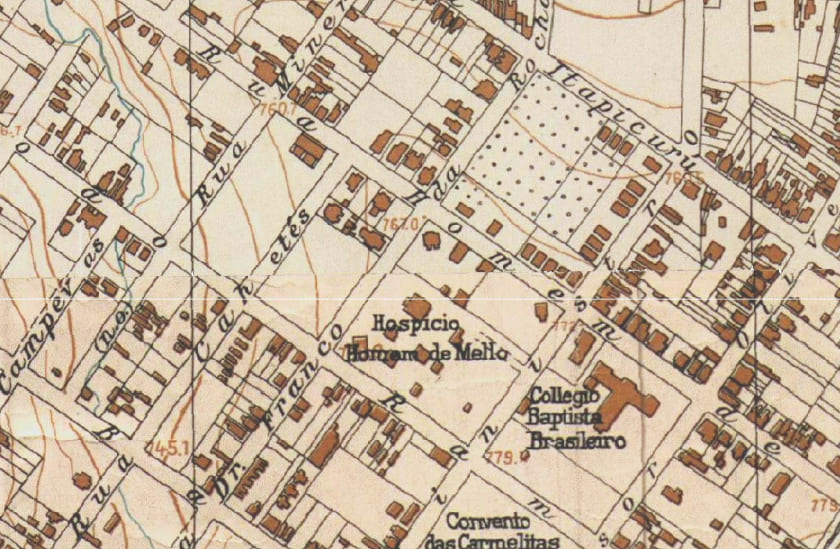 Perdizes se desenvolveu nas bordas da ferrovia que seguia em direção a oeste do centro, relacionado também ao entorno da Igreja de São Geraldo e à constituição da área do Parque da Água Branca, onde se instalou uma escola agrícola. Em meados da década de 1920, as principais ruas do bairro estavam traçadas, passando a receber casas de classe média em lotes regulares. Uma delas tinha como proprietário e morador o doutor Homem de Mello (1866-1925), que deu nome à rua e Rua Dr. Homem de Melo, 786, esquina com Rua Dr. Franco da Rocha - Perdizes São Paulo, SP foi responsável pela casa de saúde mental ali anteriormente instalada, no ano de 1907. Assim, ao mudar-se para o bairro, o médico estava próximo ao seu local de trabalho, chegando rápido em casos de emergência. Após seu falecimento, o local foi adquirido pelo Lar Brasileiro, dando espaço a um conjunto residencial de edifícios modernos.