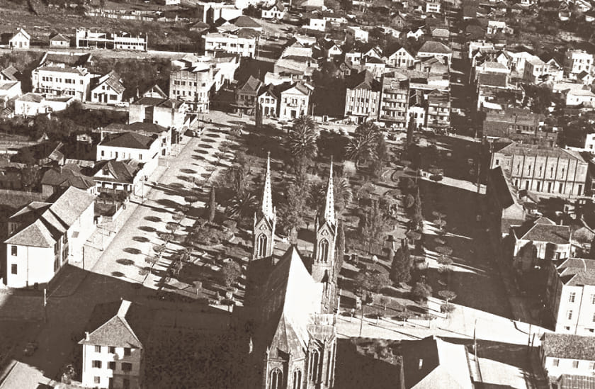 Somente por volta da década de 1940, as praças e as ruas do centro urbano, ou “Vila Velha”, como foi apelidado, foram dotadas de calçamentos e projetos urbanos que transformaram suas feições. A antiga Rua do Vinagre – atual Ramiro Barcelos, onde foi construída a unidade da Raia – foi um lugar precursor da vida moderna e urbana na cidade, com mercado, café, cinema e outros atrativos, pois tinha calçada pavimentada, um trecho com nós de pinho e outro já de pedra, contrastando com as demais ruas ainda de terra batida. Ela passava ao lado da praça da igreja, coração da “Vila Velha”, que também foi reformada no mesmo período.