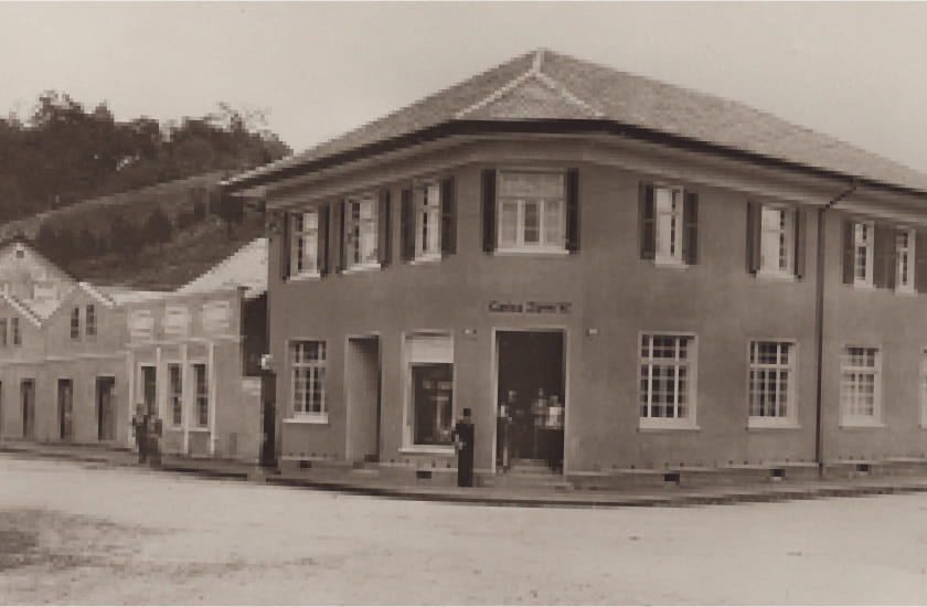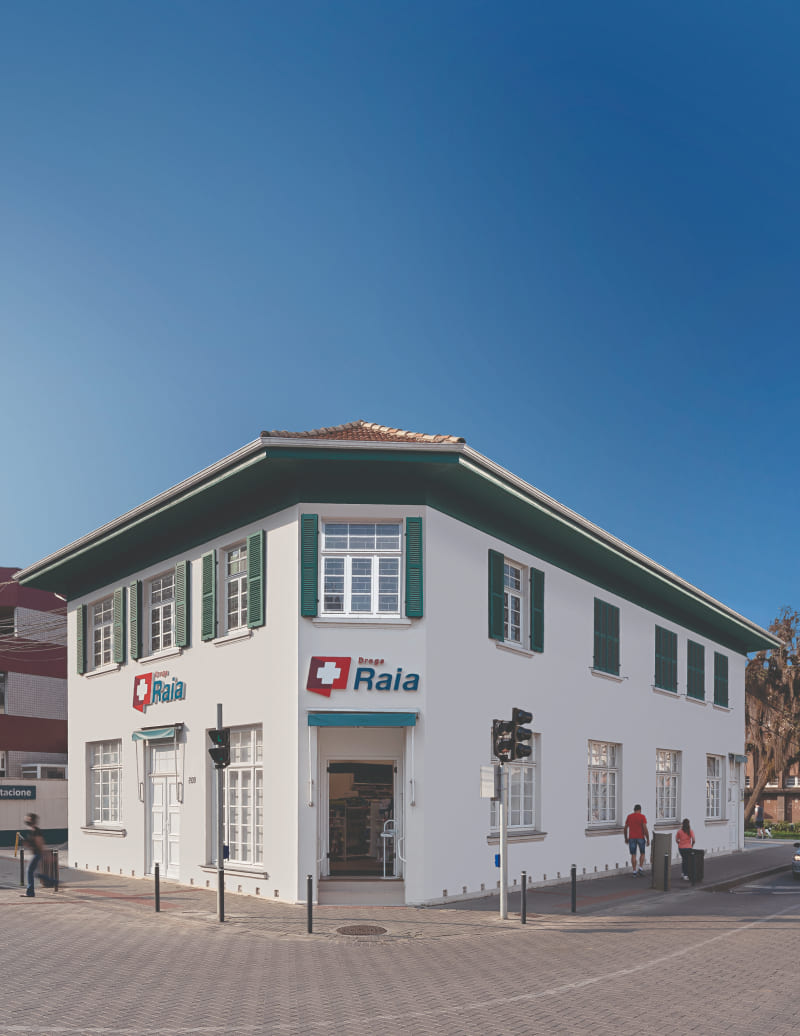 Localizada na esquina da Rua Visconde de Taunay com a Rua Jorge Lacerda, vias centrais da cidade desde sua fundação, a antiga edificação foi substituída por uma nova na década de 1930. A construção de arquitetura simples faz lembrar modelos germânicos e remete a um momento de modernização da cidade. A farmácia da Raia ocupa e mantém preservado o antigo sobrado comercial.