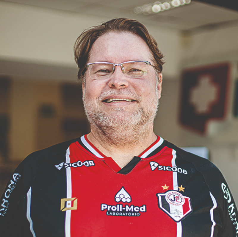 Fã de futebol, Vicente passava horas jogando na rua, nos quintais das casas, em campinhos de terra e até em um lugar inusitado. “Uma vez eu e meus amigos jogamos uma partida no Cemitério de Imigrantes. Os túmulos serviram de traves.” Seu time preferido? O Joinville Esporte Clube, claro, o glorioso JEC.
